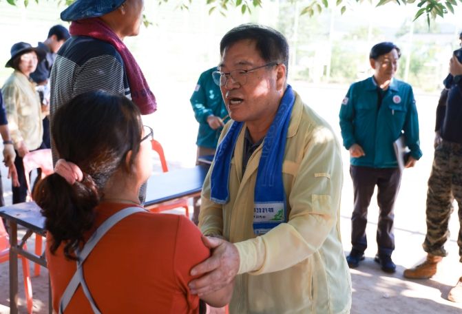 특히 공무원들과 함께 직접 복구 작업에 나서 실의에 빠진 군민에게 다시 일어설 힘을 전하고 있다.
