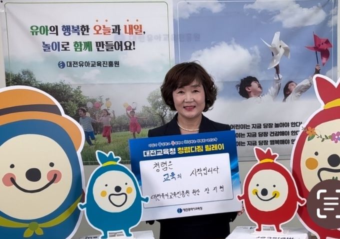 대전유아교육진흥원 장지현 원장은 “청렴은 교육의 시작이다”라는 의미를 되새기고“아이들에게 정직을 가르치기 위해 바르게, 공정하게, 투명하게, 책임있게 청렴한 교육문화를 만들어 가겠다”는 청렴 메시지를 전했다.