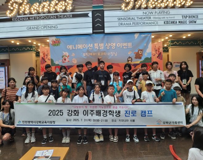 (아름다운교육신문) 인천강화교육지원청은 7월 31일 관내 이주 배경 초·중학생 33명을 대상으로 키자니아 서울에서 ‘다양성의 빛, 무한한 가능성으로 꿈을 키우다’를 주제로 ‘2025 강화 이주배경학생 진로 체험 캠프’를 운영했다.