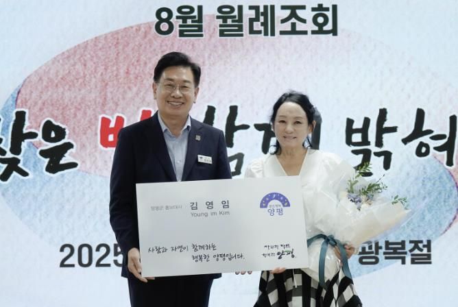 (아름다운교육신문) 양평군이 1일 대회의실에서 열린 8월 월례조회에서 국악인 김영임을 양평군 홍보대사로 위촉했다.