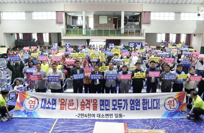 박종희 대소면장은 “대소면의 읍 승격은 지역균형 발전과 더불어 군 전체의 위상을 높이는 중요한 계기가 될 것”이라며 “대소인구 2만 도래 시 신속히 읍 승격이 이뤄질 수 있도록 최선을 다하겠다”고 말했다.