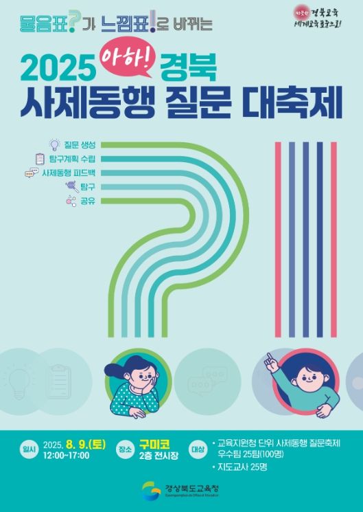 (아름다운교육신문) 경북교육청은 오는 9일 구미시에 있는 구미코 2층 전시장에서 ‘2025 아하! 경북 사제동행 질문 대축제’를 개최한다고 밝혔다.
