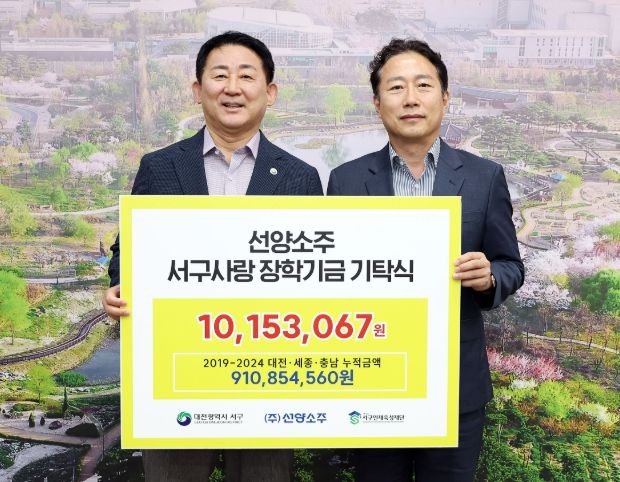 한편, ㈜선양소주는 2019년부터 현재까지 총 5,376만 원의 장학금을 대전 서구인재육성장학재단에 기탁하며, 지역 인재 양성을 위한 사회공헌 활동을 꾸준히 이어오고 있다.