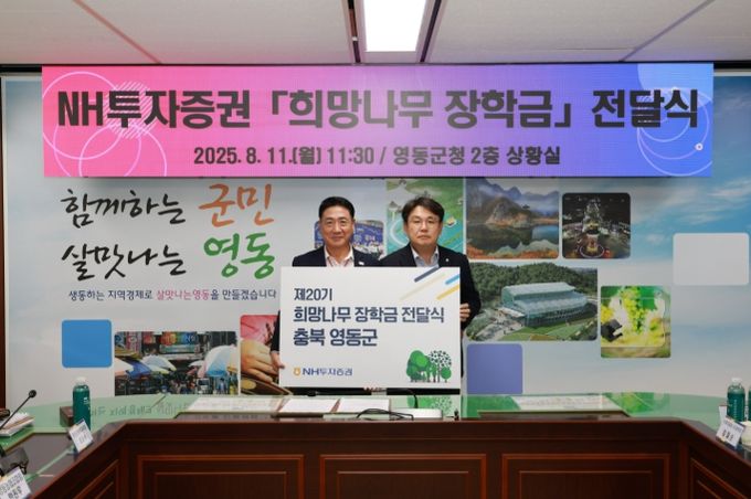 정영철 영동군수는 “NH투자증권의 따뜻한 나눔에 진심으로 감사드린다”라며 “이번 장학금이 학생들에게 희망의 씨앗이 되어 훗날 지역과 사회에 이바지하는 인재로 성장하길 바란다”라고 밝혔다.