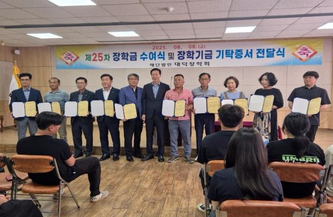 (아름다운교육신문) 장흥군 대덕읍 대덕장학회는 8일 대덕읍행정복지센터에서 ‘2025년 제25차 장학금 수여식 및 장학기금 기탁증서 전달식’을 개최했다.