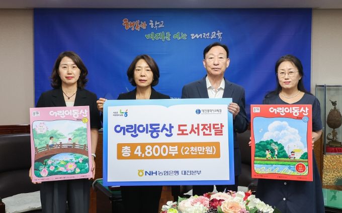 (아름다운교육신문) 대전시교육청은 8월 11일 NH농협은행 대전본부로부터 2천만원 상당의 어린이 종합 교양지 '어린이동산' 4,800부를 기탁받았다고 밝혔다.