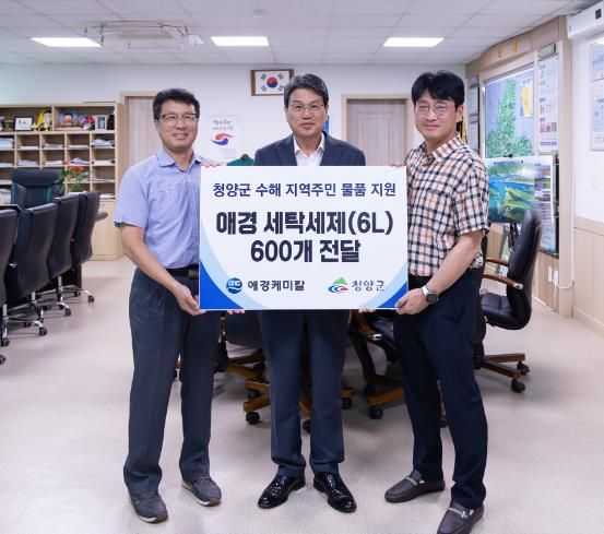 (아름다운교육신문) 청양군은 11일 군수실에서 애경케미칼(주) 청양공장으로부터 세탁세제(6L) 600개, 총 500만 원 상당의 생활필수품을 기탁받고 지역사회와 함께하는 따뜻한 나눔의 시간을 가졌다.