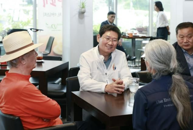 (아름다운교육신문) 용인특례시이 11일 처인구 백암면에 있는 한택식물원을 방문해 온실 등 시설을 둘러보고, 이택주 원장 등 관계자들과 환담했다.