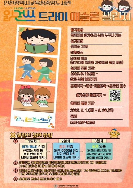 이번 챌린지는 인천 시민이면 누구나 참여할 수 있으며, 8월 12일(화)부터 중앙도서관 누리집을 통해 신청 가능하다. 모집 인원은 25명이다.