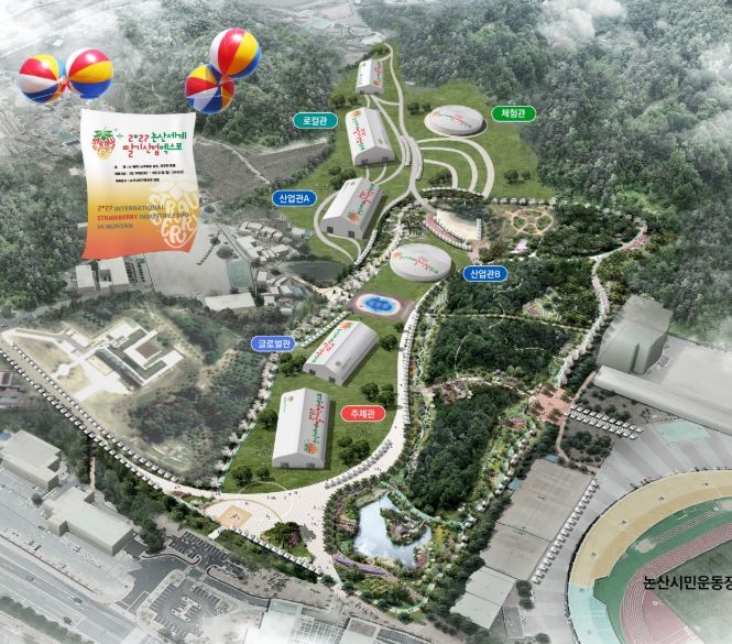 ‘2027 논산세계딸기산업엑스포’는 ‘K-베리! 스마트한 농업, 건강한 미래’를 주제로 2027년 2월 26일부터 3월 21일까지 24일간 논산시민가족공원, 논산시민운동장, 딸기향 농촌테마공원, 건양대 일원에서 열린다.