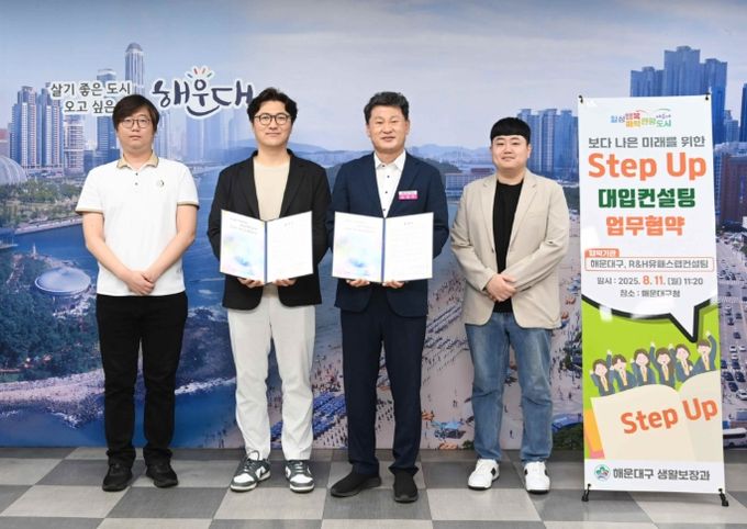 (아름다운교육신문) 해운대구는 8월 11일, 저소득층 고3 수험생의 수시 지원 전략 마련을 돕기 위해 사설 입시전문기관인 R·H유패스랩(대표 김우형)과 ‘Step Up 대입컨설팅’ 사업 추진을 위한 업무협약을 체결했다.