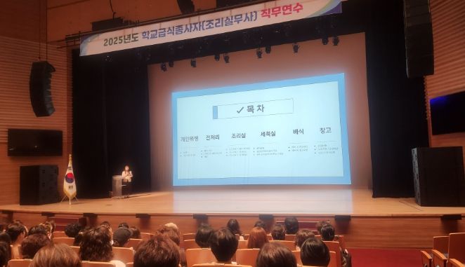 (아름다운교육신문) 인천서부교육지원청은 12일 서구문화회관 대공연장에서 관내 조리실무사 700여 명을 대상으로 ‘2025년 학교급식관계자 직무연수 및 청렴교육’을 실시했다.