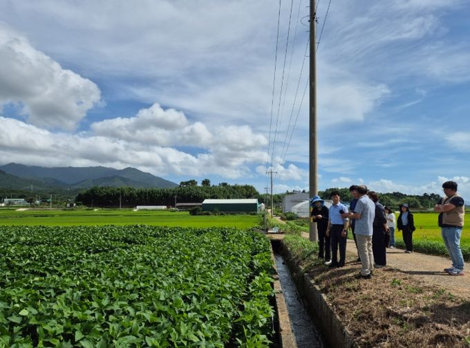 (아름다운교육신문) 농촌진흥청 국립농업과학원 이상재 농업환경부장을 비롯한 농촌진흥청, 경남농업기술원 관계자들이 8월 13일 사천시 용현면 콩 현장실증과제 현장을 찾아 합동 점검을 실시했다.