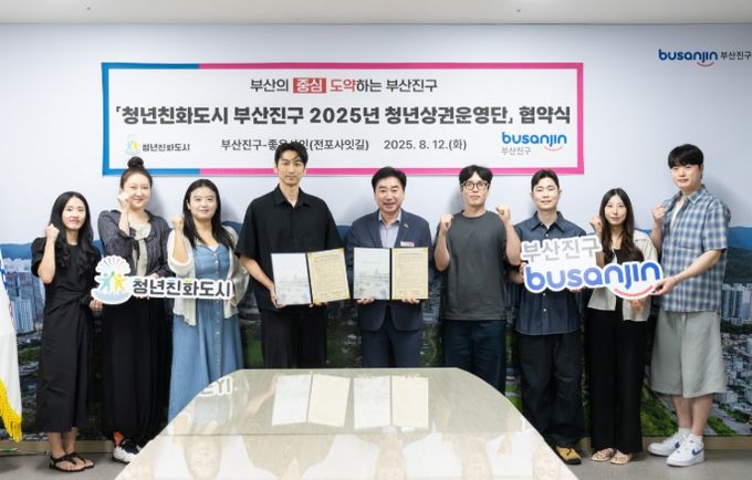 (아름다운교육신문) 부산광역시 부산진구는 8월 12일 부산진구청에서 ‘청년친화도시 부산진구 2025년 청년상권운영단’ 협약식을 개최하고 전포사잇길 청년상인회 기반 단체인 좋은사잇을 올해 청년상권운영단으로 공식 출범시켰다.