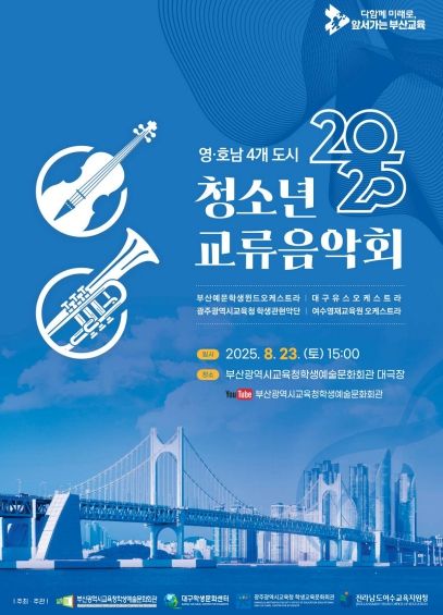 (아름다운교육신문) 부산광역시교육청학생예술문화회관은 오는 23일 오후 3시 부산학생예술문화회관 대극장에서 ‘2025 영·호남 4개 도시 청소년 교류음악회’를 개최한다.