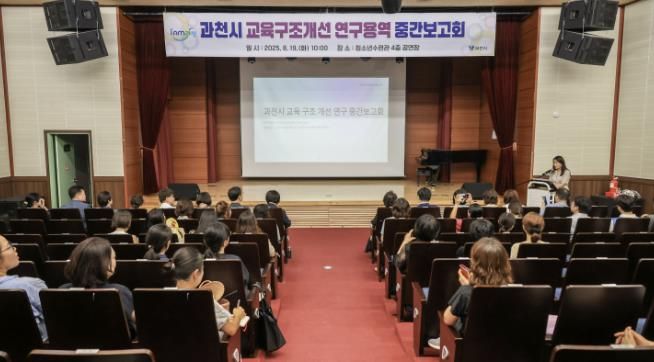 (아름다운교육신문) 과천시는 지난 19일 청소년수련관 4층 공연장에서 ‘과천시 교육구조개선 연구용역 중간보고회’를 열고 고등학군 구조 문제 해결을 위해 연구한 내용을 공유하고 관계자들로부터 의견을 듣는 자리를 가졌다.