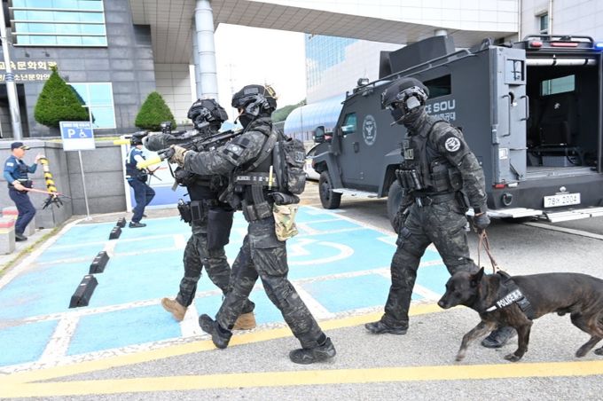 훈련 참가자들은 테러 및 화재발생 등 상황에 따른 유관기관 간 긴밀한 공조체제를 구축해 테러범을 제압하고 신속한 인명구조, 화재진압, 복구작업을 펼치는 등 실제 상황을 방불케 하는 훈련과정을 수행했다.