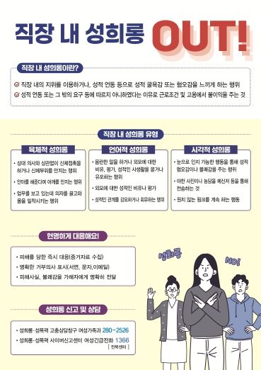 이날 오전 도청 1층 로비에서는‘직장 내 성희롱 예방 및 인식개선 캠페인’이 열렸다. 김관영 지사를 비롯해 여성가족과, 전북공무원노조, 전북경찰청, 전북자치경찰위원회에서 40여 명이 참여하여 “직장 내 성희롱 OUT”과 “존중과 배려 GO GO” 구호를 외치며 직원들에게 예방 전단지와 홍보물품을 배부했다.