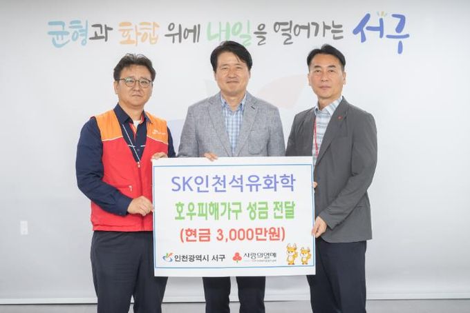 (아름다운교육신문) 인천 서구는 20일 SK인천석유화학이 집중호우 피해 이재민을 위한 피해복구 성금 3천만 원을 기부했다고 21일 밝혔다.