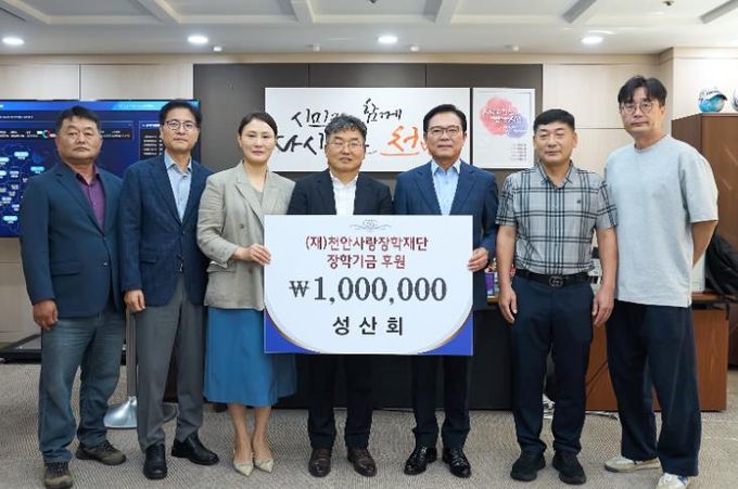 (아름다운교육신문) (재)천안사랑장학재단은 21일 성산회가 지역 인재 육성과 어려운 학생들을 지원하기 위해 장학기금 100만 원을 기탁했다고 밝혔다.