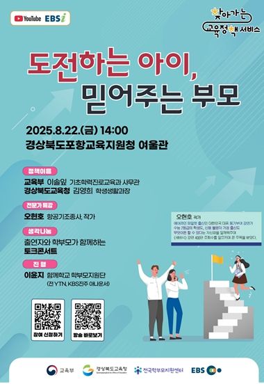 (아름다운교육신문) 경북교육청은 22일 포항교육지원청 여울관에서 학부모 150여 명을 대상으로 ‘도전하는 아이, 믿어주는 부모’를 주제로 ‘2025 찾아가는 교육정책 서비스’행사를 개최했다.