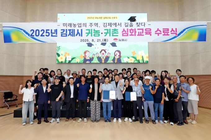 (아름다운교육신문) 김제시는 지난 21일 농업인교육문화지원센터 2층 대강당에서 2025년 귀농·귀촌 심화교육 교육생 37명을 대상으로 수료식을 개최했다고 밝혔다.