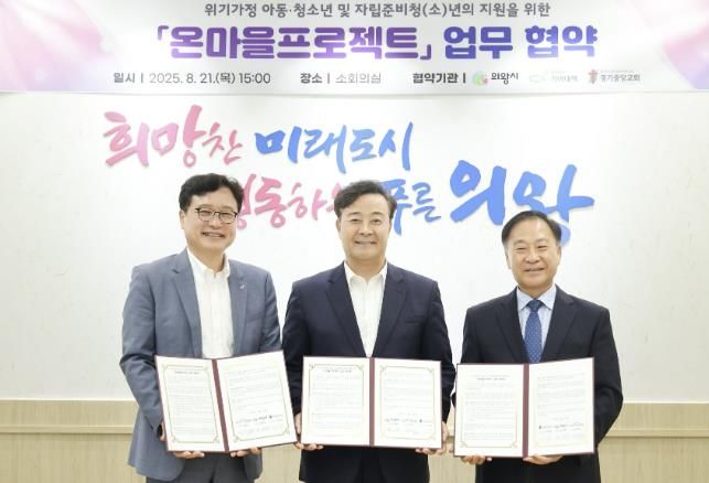 (아름다운교육신문) 의왕시는 8월 21일 시청 소회의실에서 국제구호개발 NGO 희망친구 기아대책(회장 최창남), 경기중앙교회(담임목사 이춘복)와 「온마을프로젝트」 업무협약을 체결했다.
