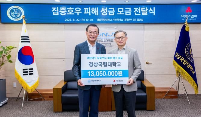 (아름다운교육신문) 경상국립대학교는 7월 16~20일 집중호우에 따른 수해 지역 및 이재민을 돕기 위한 성금 1305만 원을 경남사회복지공동모금회에 전달했다.
