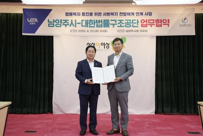 (아름다운교육신문) 남양주시는 22일 시청 여유당에서 대한법률구조공단과 경기도 최초로 법률지원 서비스 체계 구축을 위한 업무협약을 체결했다.