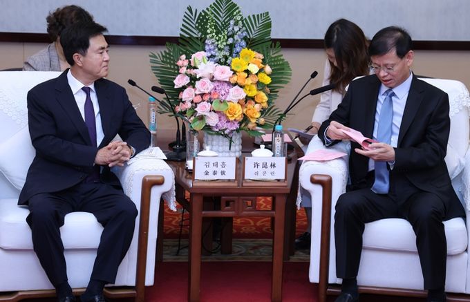 해외시장 개척 등을 위해 중국 출장에 나선 김태흠 지사는 22일 저녁 중국 난징 장수성 인민정부 접견장에서 쉬쿤린 성장을 만났다.