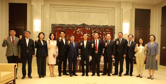 해외시장 개척 등을 위해 중국 출장 중인 김태흠 지사는 23일 저녁 양저우 영빈관에서 정하이타오 양저우시장을 만났다.