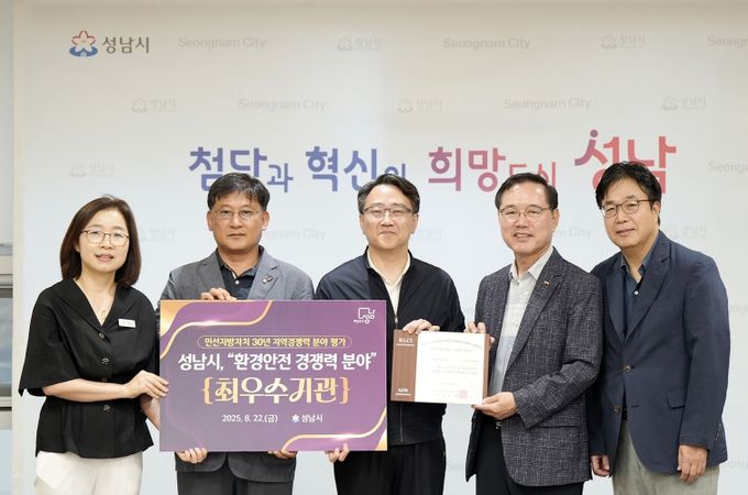 (아름다운교육신문) 성남시는 한국공공자치연구원이 주최한 ‘민선지방자치 30년 지역경쟁력 평가’에서 환경안전 경쟁력 분야 전국 1위를 차지해 최우수 인증패를 받았다고 25일 밝혔다.