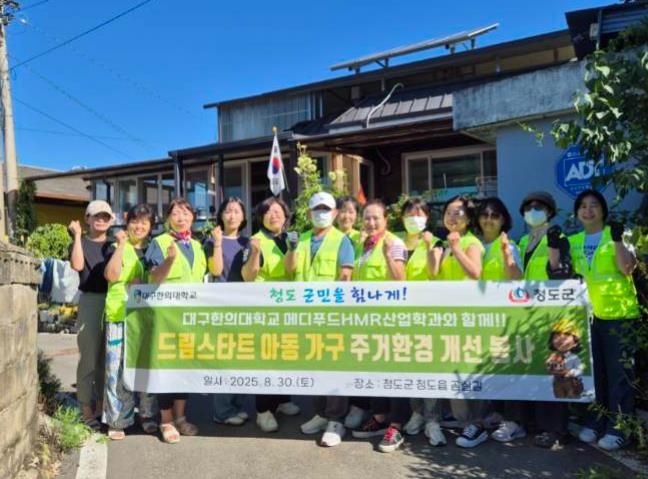 (아름다운교육신문) 대구한의대학교 메디푸드HMR산업학과 동아리‘푸드&메디쓰’는 지난 30일 청도군 드림스타트 아동을 위한 주거환경 개선 봉사활동을 실시했다.