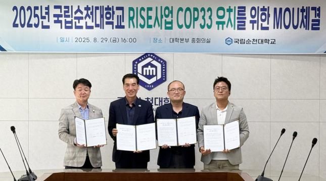국립순천대학교 이병운 총장은 “이번 업무협약으로 COP33을 남해안 남중권에 유치하여 기후변화 대응 및 지속가능발전 실현에 동참하고, 재학생들이 기업과 협업하며 실무 경험을 쌓으며, 지역 ESG 실천의 주체로 성장하도록 적극적으로 지원하겠다.”라고 말했다.