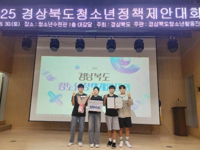 (아름다운교육신문) 울진군 청소년참여위원회가 지난 8월 30일 안동시청소년수련관에서 열린 ‘2025경상북도청소년정책제안대회’에서 최우수상(경상북도 의회의장상)을 수상했다.