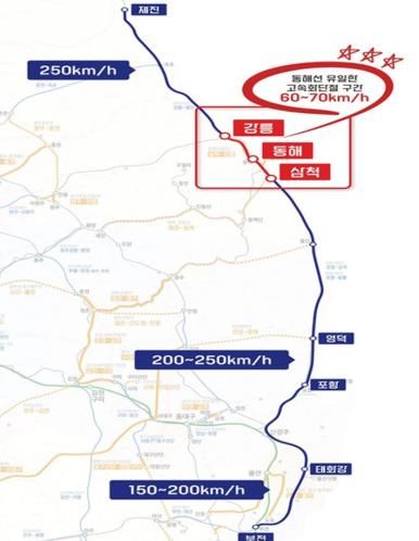 사업이 완료되면 철도 이동 시간이 최대 1시간 40분 단축되며, 강릉~부산 구간은 현재 5시간대에서 약 3시간 20분으로 단축돼 환동해권 접근성과 물류 경쟁력이 획기적으로 향상될 전망이다.