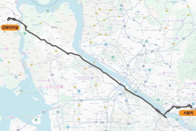 정차 정류장은 강화 5곳, 김포 1곳, 서울 6곳 등 총 12개소로, 기존 3000번(30개소)의 절반 이하 수준이다.