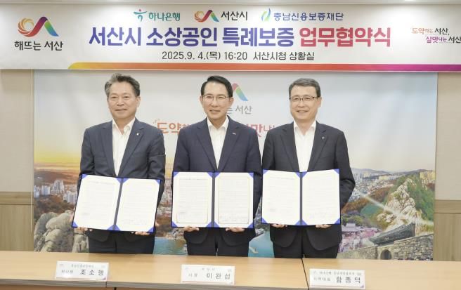 이날 협약식에는 이완섭 서산시장, 함종덕 하나은행 충남북영업본부 대표, 조소행 충남신용보증재단 이사장 등이 참석했다.
