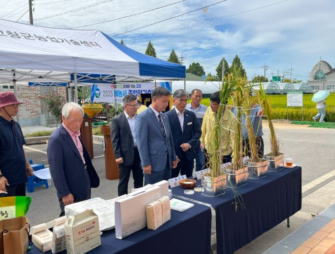 (아름다운교육신문) 고창군이 지난 23일 아산면 상갑리 ‘고창쌀 브랜드화 품종비교 전시포’에서 김영식 고창군 부군수, 조민규 고창군의회 의장 등 내빈과 벼 재배농가 등 120여 명이 참석한 가운데 2025년 벼농사 종합평가회를 가졌다.