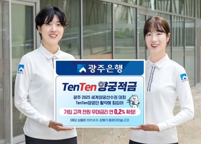 (아름다운교육신문) 광주은행은 지난 8월 31일에 판매 종료된 ‘TenTen양궁적금’의 가입 고객 전원에게 우대금리 연 0.20%p 제공이 확정됐다고 밝혔다.
