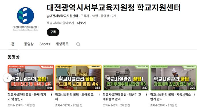 (아름다운교육신문) 대전서부교육지원청은 학교 시설관리의 전문성과 효율성을 높이기 위해 학교지원센터 시설관리 주무관의 노하우가 담긴 교육 영상을 유튜브를 통해 제공한다고 밝혔다.