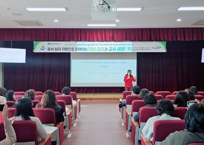 이번 연수는 정부 국정 과제인 ‘정부책임형 유보통합(유아․보육 통합)’ 추진에 따라 영유아의 정서·심리 발달 특성을 이해하고, 현장에서 적용 가능한 지원 방안을 모색하기 위해 마련됐다.