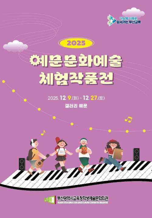 (아름다운교육신문) 부산광역시교육청 학생예술문화회관은 9일부터 27일까지 학생예술문화회관 갤러리 예문에서 ‘2025 예문문화예술체험작품전’을 개최한다.