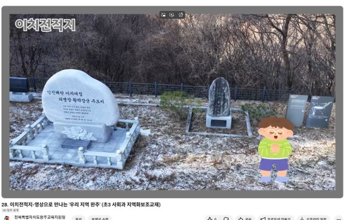 특히 완주 관내 초등교사들이 참여해 제작된 이 동영상은 사회과 수업의 이해를 돕기위해 동기유발이나 보조자료로 사용될 계획이다.