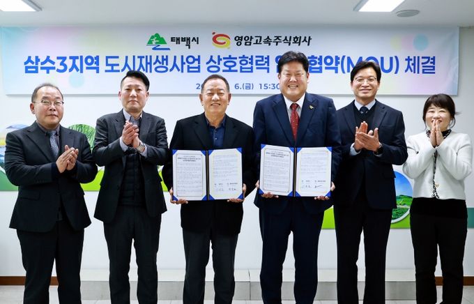 (아름다운교육신문) 태백시는 3월 6일 오후 3시 30분 시청 소회의실에서 영암고속 주식회사와 ‘삼수3지역 도시재생사업 추진을 위한 업무협약’을 체결했다고 밝혔다.