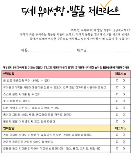 또한 성장발달 체크리스트에서 의심 징후가 발견될 경우 담임교사가 유아의 행동과 발달 상황을 면밀히 관찰해 추가 지원이 필요한 유아를 파악한다.