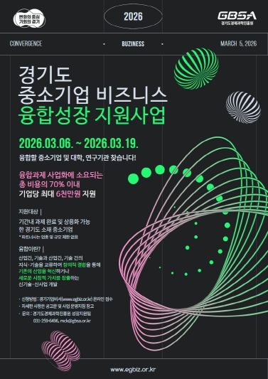 (아름다운교육신문) 경기도와 (재)경기도경제과학진흥원이 도내 중소기업의 혁신 성장과 새로운 비즈니스 모델 발굴을 돕는 ‘2026년 중소기업 비즈니스 융합성장 지원사업’의 참여기업을 모집한다.