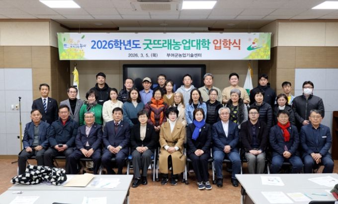 (아름다운교육신문) 부여군은 농업기술센터 굿뜨래홍보교육관에서 미래농업을 이끌 정예 양성을 위한 ‘2026학년도 굿뜨래농업대학’ 입학식을 개최했다고 9일 밝혔다.