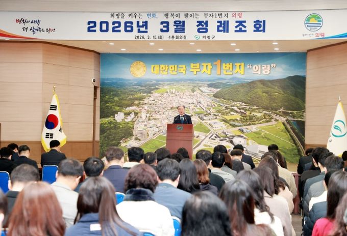 (아름다운교육신문) 오태완 의령군수가 정례조회에서 군민의 걱정을 덜어주는 ‘민생안심 3책(三責)’을 강조하며 군정 방향을 공유했다.