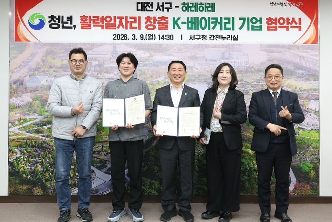 (아름다운교육신문) 대전 서구는 청년활력일자리창출 11번째 협약 기업으로 지역 대표 K-베이커리 하레하레(대표 이창민)를 선정하고 ‘2026년 청년 활력 일자리 창출’을 위한 업무협약을 체결했다고 10일 밝혔다.
